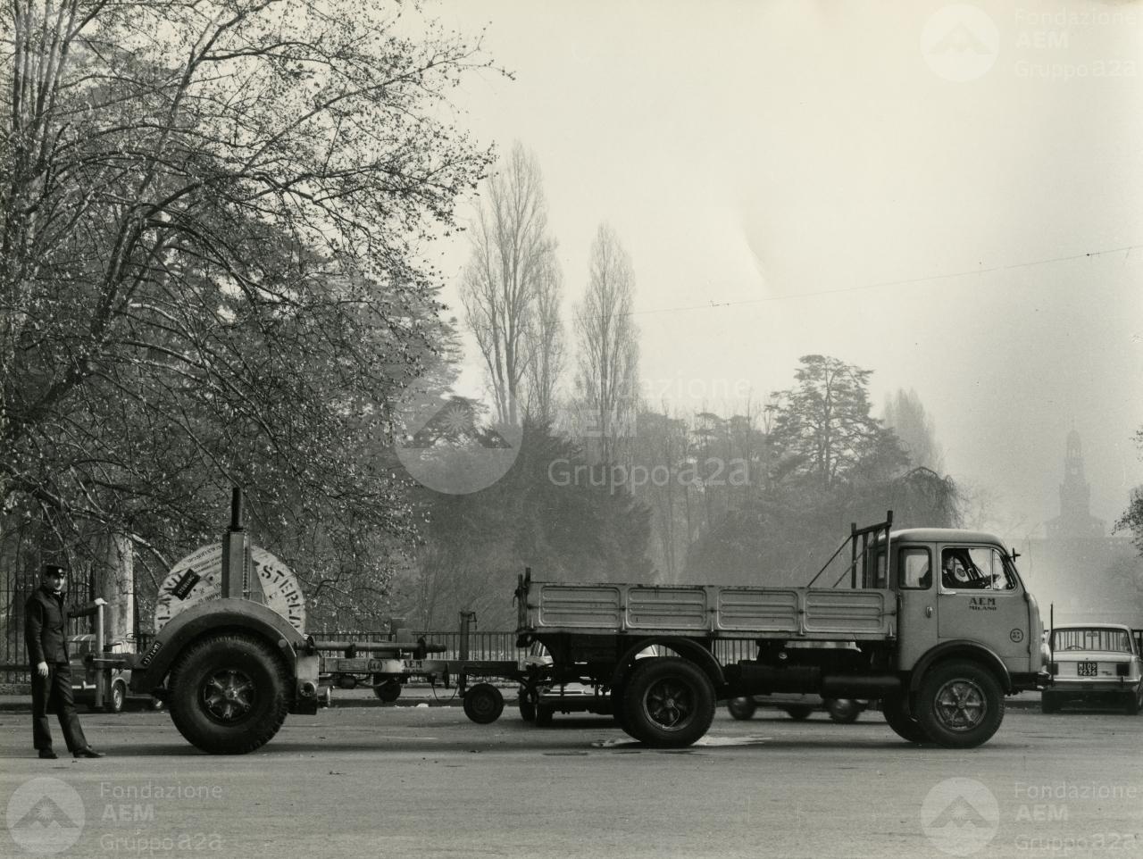 Autoveicolo Aem con rimorchio per trasporto cavi