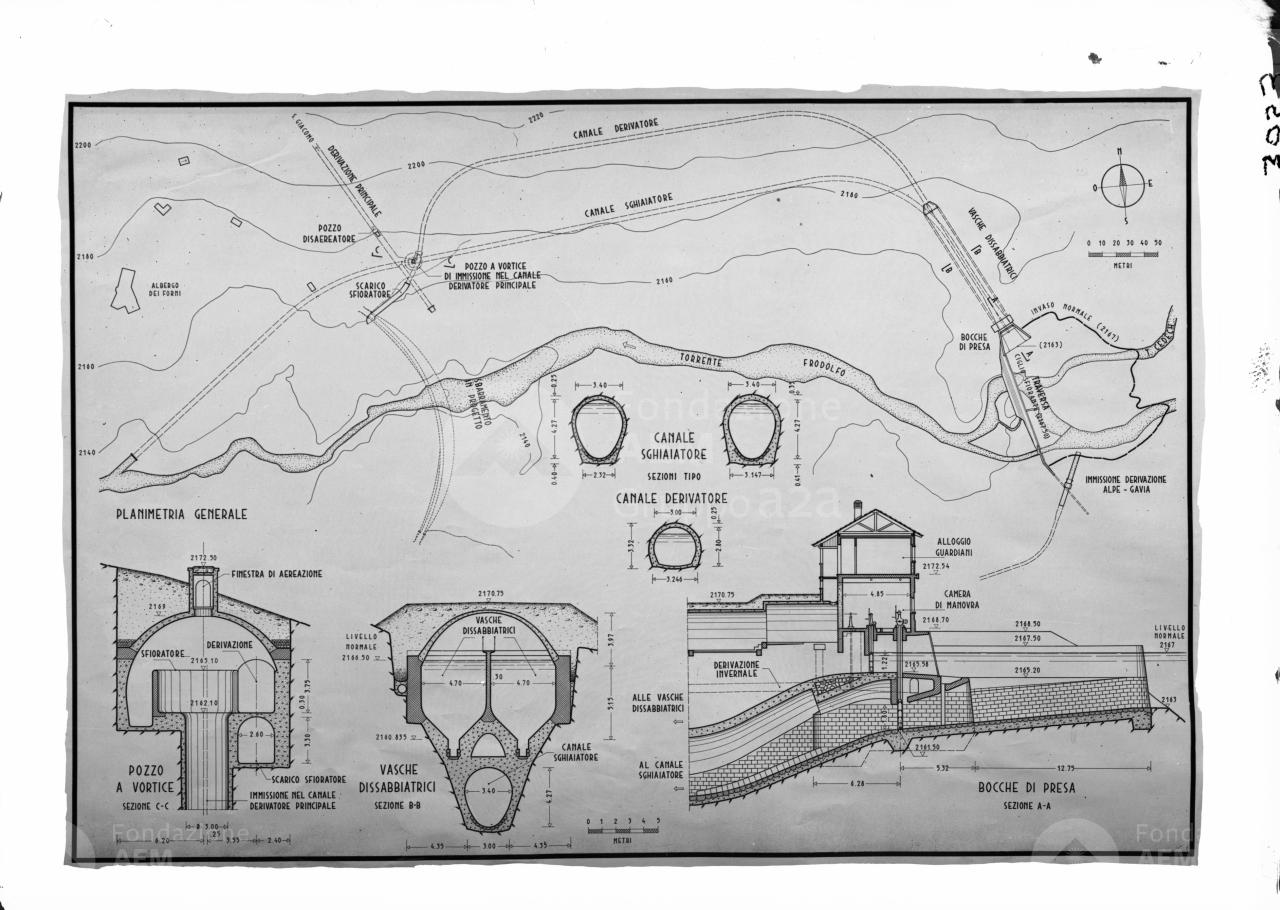 Canale di derivazione Forni-Braulio – Presa ai Forni – Disegni in pianta e in sezione